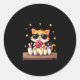Cute Cat With Sunglasses Cat Playing Bowling For m Classic Round Sticker