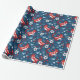 A cute folk art cat pattern in navy blue and red decorates this wrapping paper. Fun to wrap a gift for a cat lover! Designed for you by Blackberry Boulevard.