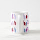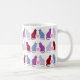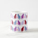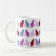Cute cat silhouette pattern in purple and blue with pink hearts in-between. Two-tone mug with pink interior.