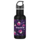 Water bottle with an adorable Halloween themed pattern. Cats in witches hats, sitting on pink pumpkins with purple cobwebs in the background.