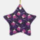 An ornament with an adorable Halloween themed pattern. Cats in witches hats, sitting on pink pumpkins with purple cobwebs in the background.
