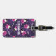 Personalised luggage tag with an adorable Halloween themed pattern. Cats in witches hats, sitting on pink pumpkins with purple cobwebs in the background.
