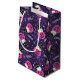 A gift bag with an adorable Halloween themed pattern. Cats in witches hats, sitting on pink pumpkins with purple cobwebs in the background.
