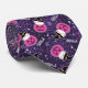 A tie with an adorable Halloween themed pattern. Cats in witches hats, sitting on pink pumpkins with purple cobwebs in the background.