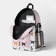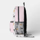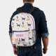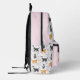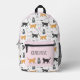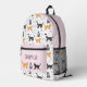 This paw-sitively purrfect cat backpack is for the cat lovers. This design features a variety of cat breeds, tuxedo, tabby, orange, grey, white, and black and white with pink pawprints.