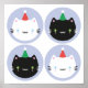 Kawaii repeat pattern of black and white cats wearing red and green striped party hats. Perfect for Christmas, New Year and other celebrations.