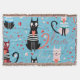 Cute cats pattern on a blue background throw blanket