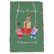 cute cats with present moss green Christmas Medium Gift Bag