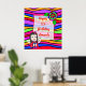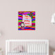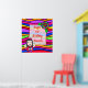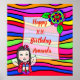 Personalise this poster by adding the birthday girl's name to it in the customise area. Cute black haired Fairy Girl Happy Birthday with bright purple, lime green, red and primary colours! Folk Art style poster.