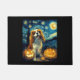 Cute Cavalier King Charles Spaniel Dog Halloween Jack O Lantern Pumpkin Face Starry Night Van Gogh Style