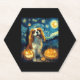 Cute Cavalier King Charles Spaniel Dog Halloween Jack O Lantern Pumpkin Face Starry Night Van Gogh Style
