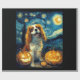Cute Cavalier King Charles Spaniel Dog Halloween Jack O Lantern Pumpkin Face Starry Night Van Gogh Style