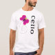 Pretty pink butterfly with Cello slogan comes on this popular cellist music gift.