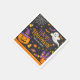 Set a spook-tacular table with these whimsical Halloween paper napkins, perfect for a children's classroom party or a family trick-or-treat bash. Featuring a trendy black chalkboard background, the design is filled with friendly festive icons including a smiling ghost, a jack-o'-lantern in a purple witch hat, a haunted castle, and scattered candy corn.