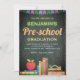 Amaze your guests with this cute preschool graduation invite featuring colourful books with cute elements and vibrant typography against a chalkboard background. Simply add your event details on this easy-to-use template to make it a one-of-a-kind invitation.