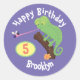 Cute chameleon catching a bug cartoon birthday classic round sticker