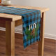 Beautiful classic blue and black Buffalo lumberjack checks pattern with seasonal image of pine cones and needles, and a classic fun JOY greeting wish. A classy winter December season design for the interior designer, or cottage country style lover who loves winter Christmas holiday themes. Original modern table for decorating the living room, family room, or dining area of your log cabin, cottage, lake or river vacation home.
