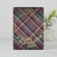 This holiday card stands out with its elegant and unique design. It features a timeless "Happy Thanksgiving" greeting printed in real gold foil, customisable to your preference. The card displays cosy, warm, colourful teal blue, and dark pink red coloured farmhouse style plaid tartan pattern background. The front offers space for your family name, photo, and the current year, while the back is perfect for adding a personalised seasonal message or poem. It's a stylish way to send your Thanksgiving holiday wishes.