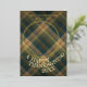 This holiday card stands out with its elegant and unique design. It features a timeless "Happy Thanksgiving" greeting printed in real gold foil, customisable to your preference. The card displays cosy, warm, colourful dark green, beige, tan, and red brown coloured farmhouse style plaid tartan pattern background. The front offers space for your family name, photo, and the current year, while the back is perfect for adding a personalised seasonal message or poem. It's a stylish way to send your Thanksgiving holiday wishes.