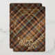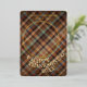 This holiday card stands out with its elegant and unique design. It features a timeless "Happy Thanksgiving" greeting printed in real gold foil, customisable to your preference. The card displays cosy, warm, colourful teal blue and orange red coloured farmhouse style plaid tartan pattern background. The front offers space for your family name, photo, and the current year, while the back is perfect for adding a personalised seasonal message or poem. It's a stylish way to send your Thanksgiving holiday wishes.