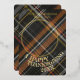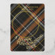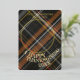 This holiday card stands out with its elegant and unique design. It features a timeless "Happy Thanksgiving" greeting printed in real gold foil, customisable to your preference. The card displays cosy, warm, colourful dark grey, red, and orange brown coloured farmhouse style plaid tartan pattern background. The front offers space for your family name, photo, and the current year, while the back is perfect for adding a personalised seasonal message or poem. It's a stylish way to send your Thanksgiving holiday wishes.