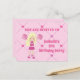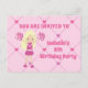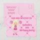 This adorable pink cheerleading birthday party postcard invitation features a pretty blonde cheerleader girl in a cheer uniform holding pink pom poms. Personalise this cute children's party invite with your child's name in lovely pink and write your details on the back of this postcard.