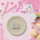 Sweet and nerdy Cute Chemistry Birthday Party Paper Plates featuring a quirky pair of bubbling lab beakers in light blue and light pink. These whimsical science themed plates are perfect for a science themed birthday party. Easy to customise, simply add your own personalised text in the spaces provided or click on the "Customise It" button to find more personalisation options.