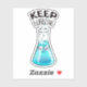 Cute chemistry sticker for women in science with a nerdy smiling flask character with glasses and the funny text Keep Bubbling.