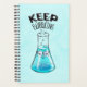 Cute chemistry planner for women in science with a nerdy smiling flask character with glasses and the funny text Keep Bubbling.