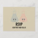 Sweet and nerdy Cute Chemistry Wedding RSVP Postcard featuring a quirky pair of bubbling lab beakers in light blue and light pink. This whimsical science themed response postcard is perfect for the couple who would like their playful and fun personalities to shine through with a geeky and memorable wedding design. Easy to customise, simply add your own personalised text in the spaces provided or click on the "Customise It" button to find more personalisation options.