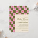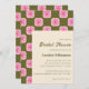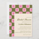 Cute Retro Boho Chequerboard Flower Green Pink Bridal Shower Invitation