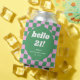 Cute Chequerboard Pink Green 21st Birthday Custom Can Cooler