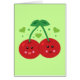 This adorably kawaii cherry illustration features two shiny red cherries with cute smiles, rosy cheeks and rich green leaves surrouned by sweet little green hearts! This cute cherry design is the perfect gift for anyone who loves cherries, kawaii art, cartoon fruit or stylish fun artwork!