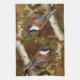 Cute Chestnut-Backed Chickadee on the Pear Tree Tea Towel