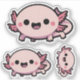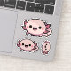 This delightful design features a whimsical axolotl, a neotenic salamander known for its regenerative abilities. The axolotl is illustrated in a charming, cartoonish style with a round body and an oversized head. Its soft pink skin is accented with darker pink highlights on the gills, which resemble delicate, leafy fronds. The creature’s wide, expressive eyes and broad smile give it an endearing and friendly appearance. Its short limbs and gently curling tail add to the playful and imaginative nature of the design. This adorable axolotl is perfect for those who love unique and cute aquatic creatures.