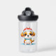 Cute cartoon chibi kitten Merry Christmas puppy dog holiday personalised water bottle.