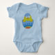Dress your little baby boy or girl in style for Easter with our light blue baby jersey bodysuit featuring Cute Chick Hatching From Blue Colourful Egg design