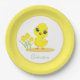 Cute Chick with Flowers on Yellow & White Paper Pl Paper Plate