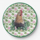 These St Patrick's Day paper plates feature a cute watercolored chicken surrounded by a border of purple clover.