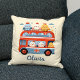 This personalised throw pillow features a classic red London double-decker bus, it's bustling with a flock of adorable, whimsical chickens. Some perch playfully on the iconic red exterior, while others peek out the open windows of the upper deck. Personalise it with your child's name for a truly unique gift that will be cherished for years to come.