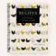 Modern Family Recipe Notebook with a simple illustration of chickens in shades of yellow, white and black. The back side is customisable with your favourite family photo or signature recipe photo.