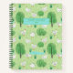 Cute Chickens in a Green Meadow with Trees Name Notebook