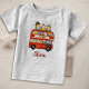 Buckle up for an adorable adventure with this personalised baby tee! Featuring a charming red double-decker London bus, this whimsical design showcases a flock of fluffy chicks peeping out the windows and on top. Personalise it with your little one's name for a one-of-a-kind outfit.