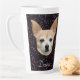 Cute Chihuahua dog black purple galaxy glitter stars home decor. Tan color min pin mix breed canine white latte cup. Beautiful pet printed dog lovers design. Trendy, girly, chic, elegant, cool kitchen mug for her. Custom typography. Image copyright Marg Seregelyi Photography.