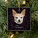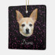 Cute Chihuahua dog black purple galaxy glitter stars Christmas tree ornament. Custom name, girly, elegant tan colour min pin mix breed canine holiday decor. Beautiful pet printed dog lovers design. Trendy, cool, chic, for her. Image copyright Marg Seregelyi Photography.