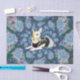 Cute chihuahua floral blue yellow neon dog art. min pin mix breed design craft decoupage tissue paper. Modern, trendy, chic one-of-a-kind pop art gift wrap. Sunflowers kaleidoscope abstract. For small dog lovers. Image copyright Marg Seregelyi Photography.