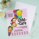 Fully Customisable Child Care 8x10 Flyer is absolutely adorable and utterly unique. Professionally painted and designed. It features hand-painted children flying away with balloons. You can change all the text AND the background colour to really make this personal. Hang on every bulletin board in your area! In the library, deli, post office, pizzeria, park, gym, paediatrician's office etc.