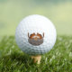 This awesome golf ball features a pair of cute Chipmunks. The adorable little brown rodents have black and white stripes on their faces and backs and fluffy tails. They are standing nose to nose looking lovingly into each others' eyes. They are both holding a small brown hazelnut and between them is a pile of nuts that they have gathered together. They are standing on a tree stump. A lovely design for celebrating a Wedding for any couple that are nuts about eachother.