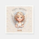 Cute Christmas paper napkins with an adorable Christmas angel and snowflake pattern in beige-golden and grey-silver colours for Christmas or Christmas Birthday party. Easily personalise the text or leave it blank. - Kate Eden Art