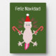 This awesome plaque features a digital art image of a cute Christmas Axolotl. The Axolotl is pale pink with bright pink gills. It is holding a red and white striped candy cane in each hand and is wearing a festive Red and white Santa hat. The axolotl is type of Salamander from Mexico. There is custom text so you can include a message.